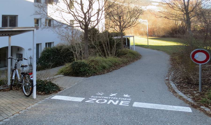 Verbotsschild des halböffentlichen Wegs im Quartier «Dreibünden», Chur
